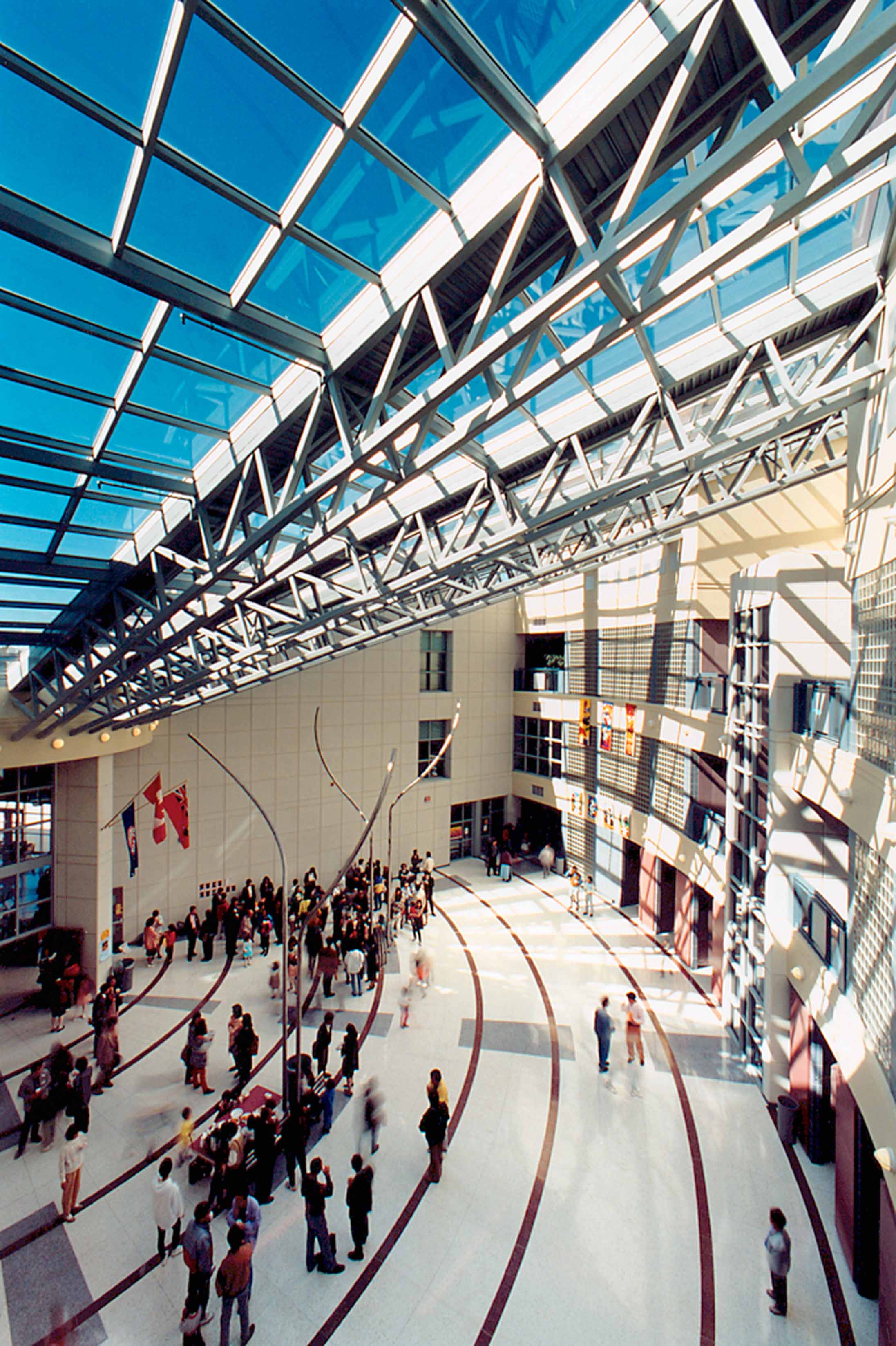 We were the original Architects for this large high school, completed in 1992 incorporating a complex building program with multiple school & community functions, which continues to play a significant role in the life of young people and their families in this emerging highly multi-cultural community. Middlefield Collegiate truly is a community school and it is seen increasingly by all members of the community as a place of meeting for learning, recreational, religious and community events.