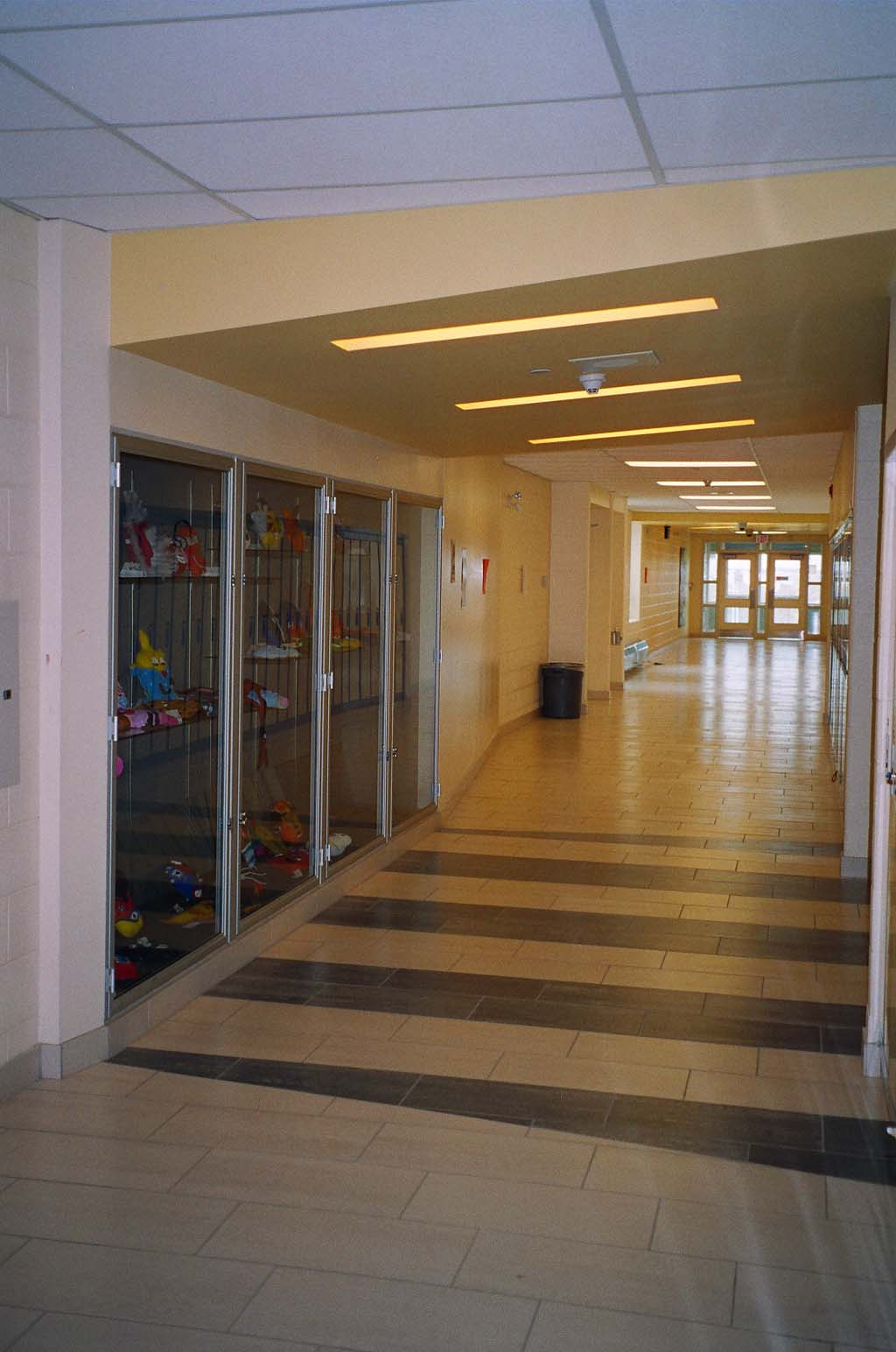 This project consisted of a new addition to and complete renovation of the existing building. The expansion, in addition to 22 new classrooms, included a new library, staff room, ‘Integrated Technology’ or industrial arts classroom and double gym. The renovation included upgrades to the science labs, new air conditioning, new hot water heating and ventilation systems, a new fire sprinkler system, new lighting and ceiling systems, as well as, fire safety improvements. The main entrances and the administration area were also considered for renovation at this time.