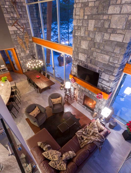 The multi-purpose Muskoka Room is a space where people can read, play cards, or watch a movie.  The Upper Loft Level contains a Games Area with a full-sized ping pong table and soft seating, which is adjacent to the Loft Bedroom; complete with a king-size bed, wardrobe units and private 3-piece washroom.